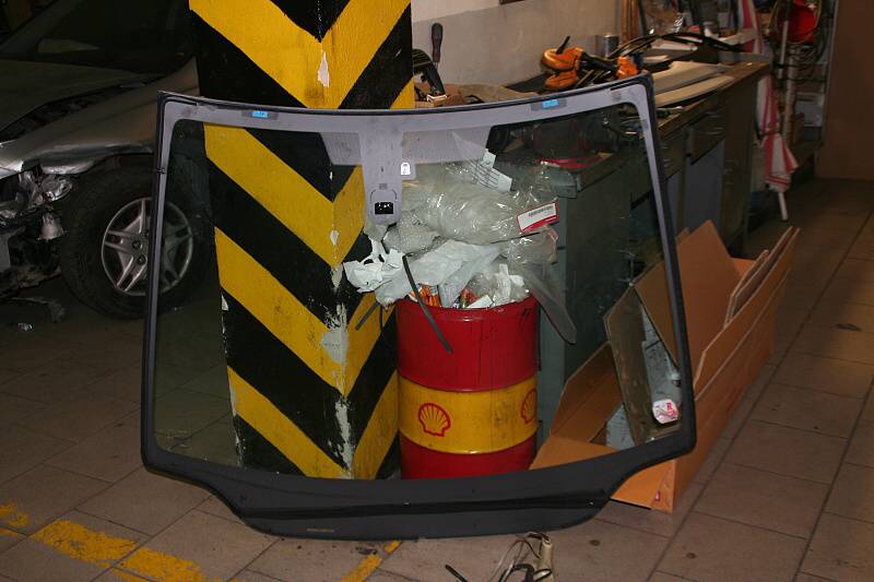 prasklé čelní sklo